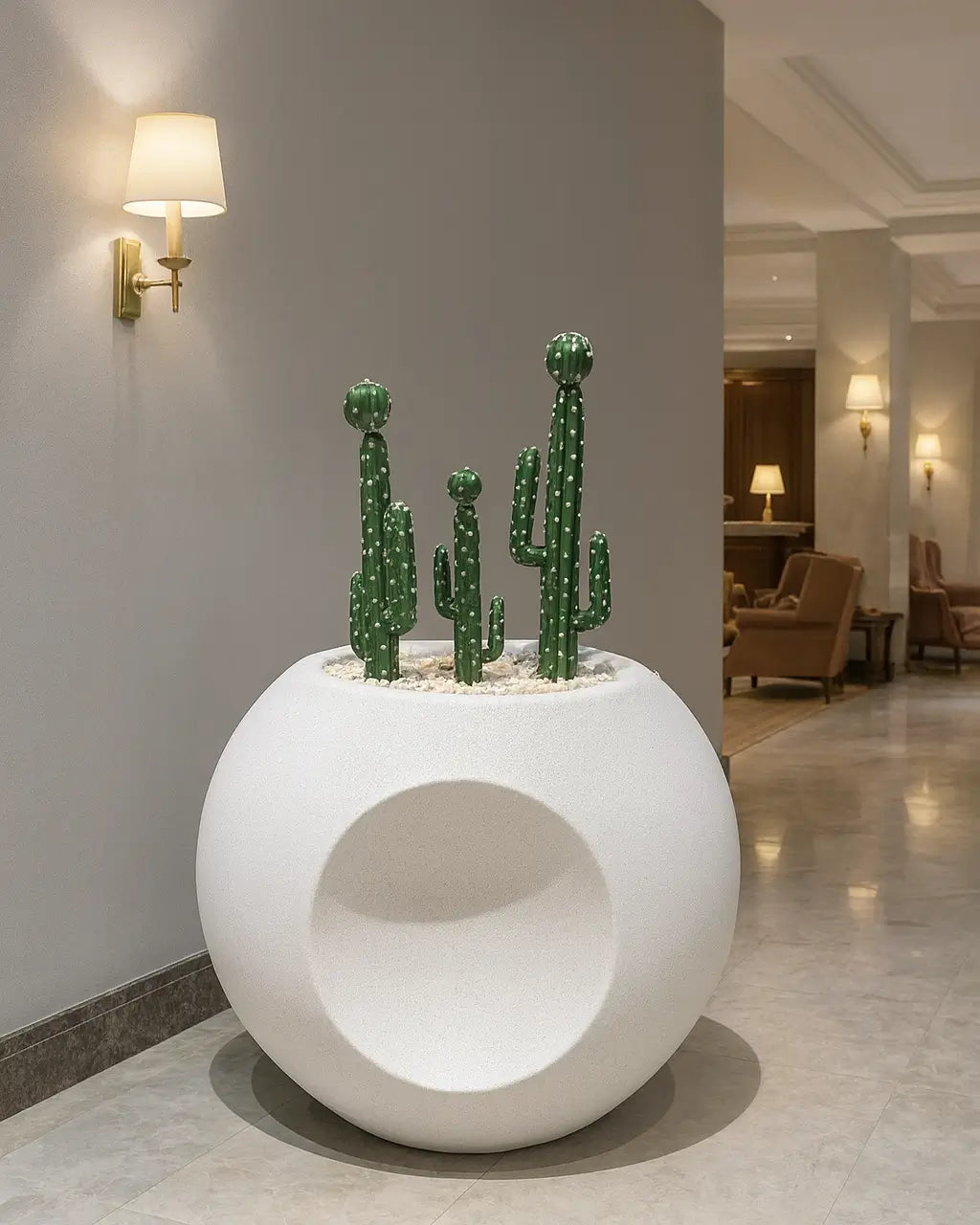 Dayanıklı fiber saksı içerisinde sunulan bu kaktüs, doğal görünümü ve modern tasarımıyla her mekanda dikkat...