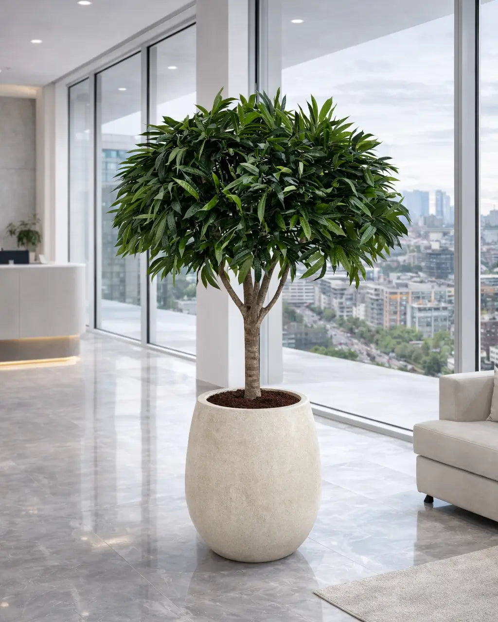 Doğal Gövdeli Yapay Podocarpus Ağacı – Beton Saksıda Tasarım Dekorasyon Modern ve şık iç mekanlar...
